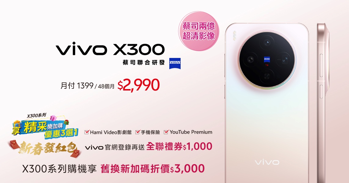 【 vivo X300 搭配 精采5G 優惠價】