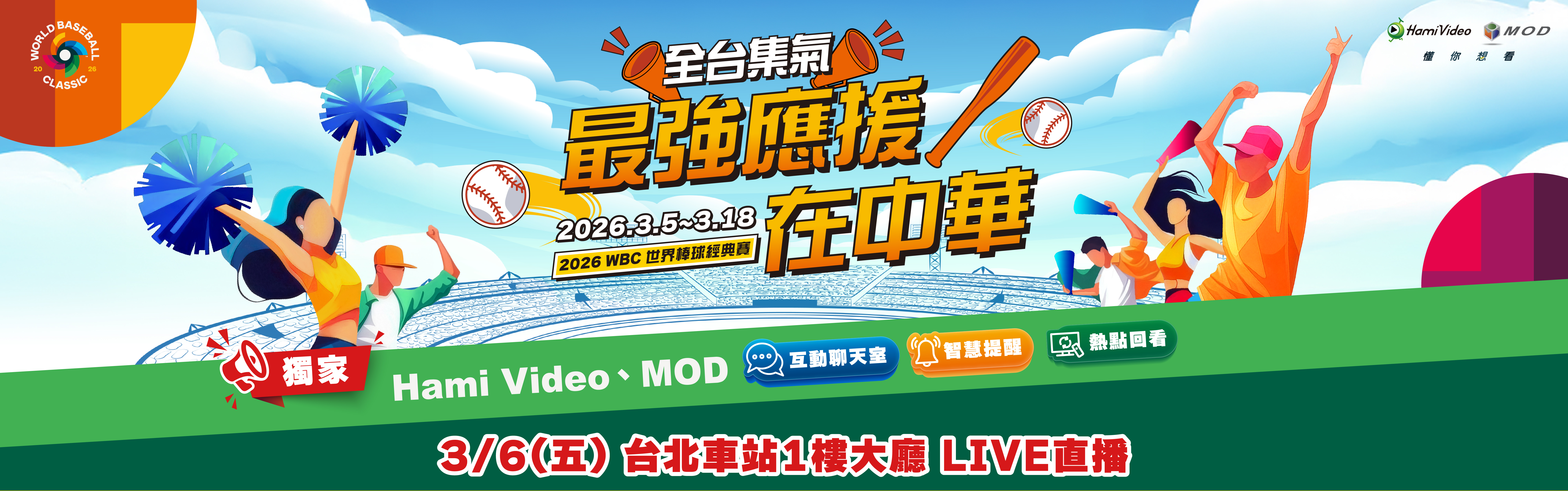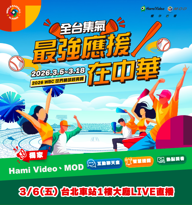 中華電信將於115年3月6日(五)於台鐵台北車站1樓大廳舉辦「全台集氣,最強應援在中華」WBC世界棒球經典賽【中華隊 vs. 日本隊】公播活動,號召民眾為中華隊集氣應援!