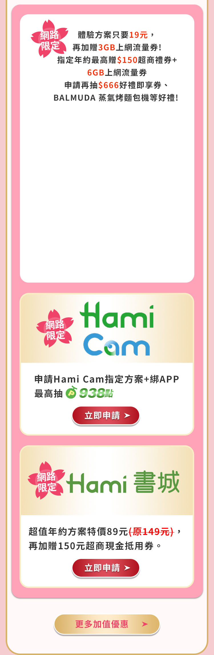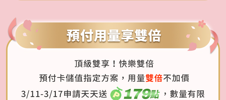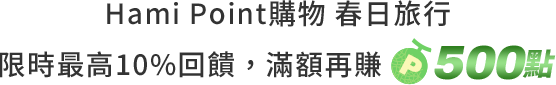 ※3/11-3/17申請,免登錄Hami Point 179點(市價$179,每日前66名) 462名 資格三註1 ★早鳥抽
