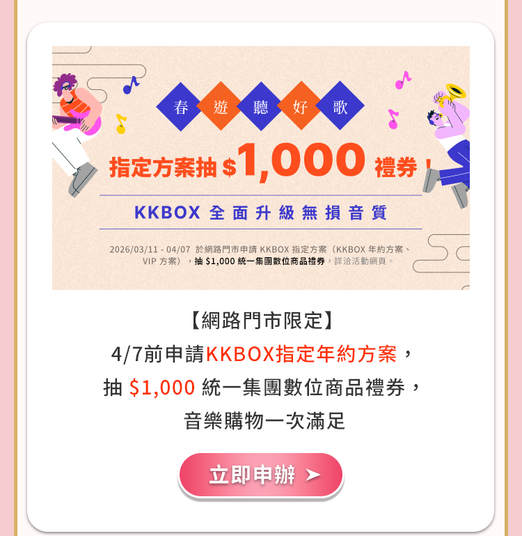 - 活動期間:115年3月11日起至115年4月7日23:59分止。
