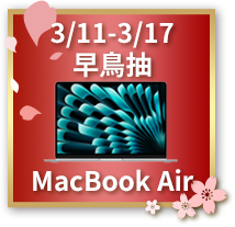 ※3/17前申請,免登錄MacBook Air 13吋(市價$32,900,1台) 1名 資格四 ★加碼抽好禮