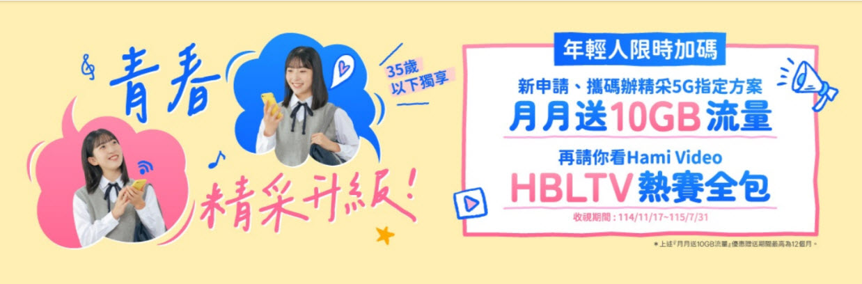 🌟【青春精采升級】35 歲以下限定!每月再送你 10GB,爽爽用一整年!🔥
