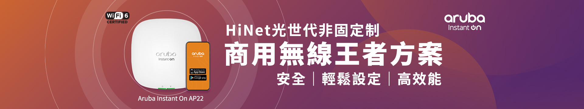 【公告】「HiNet企業超寬頻整合服務」全新推出Premium版Aruba企業級無線AP、Multi-G交換器以及Check Point超高速閘道器,打造完善的網路解決方案。