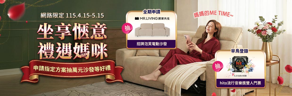 【網路限定】母親節「坐享愜意,禮遇媽咪」申請指定方案抽電動沙發、BOSCH洗碗機等好禮💗