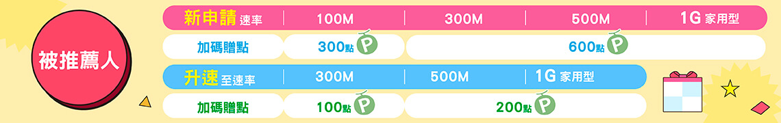 您可成為推薦人邀請更多親友升級光世代,點數回饋一起拿!