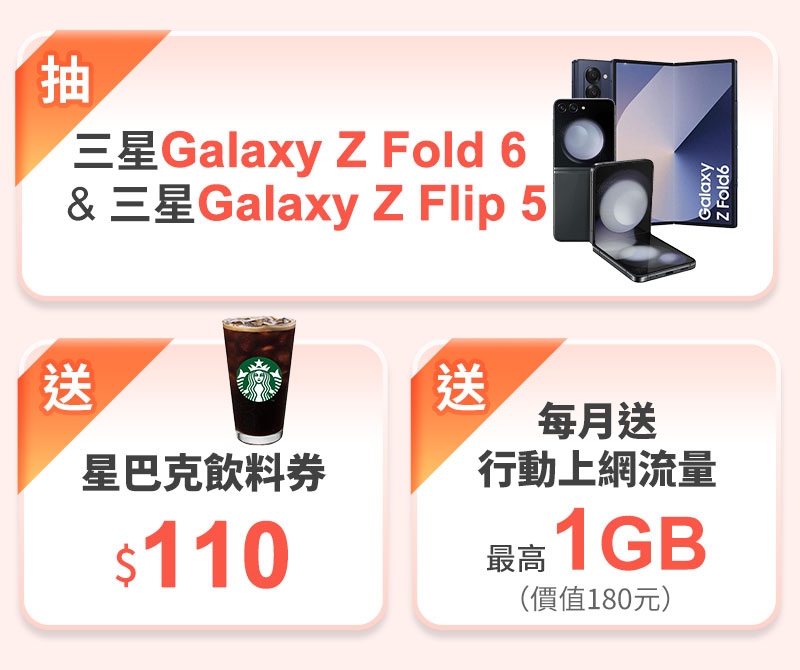 申請 OMIA PLUS 年約方案並成功登入服務,抽Samsung Galaxy Z Fold 6 & Z Flip 5 各乙台。
