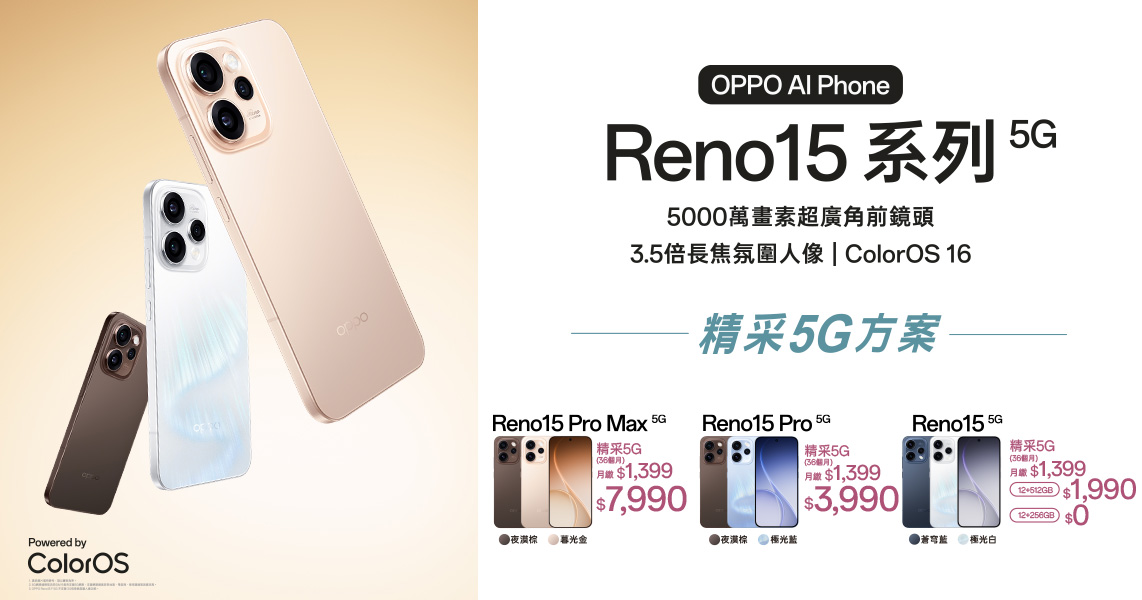 【OPPO Reno15系列 搭配 精采5G 優惠價】