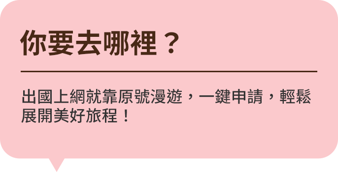 本服務僅適用於一般客戶漫遊上網用途,不適用於商業或營利用途;各方案適用期間、涵蓋國家、方案內容、使用說明及申請方式依網路門市公告為準,中華電信保有隨時修改、暫停、終止漫遊上網方案之權利。