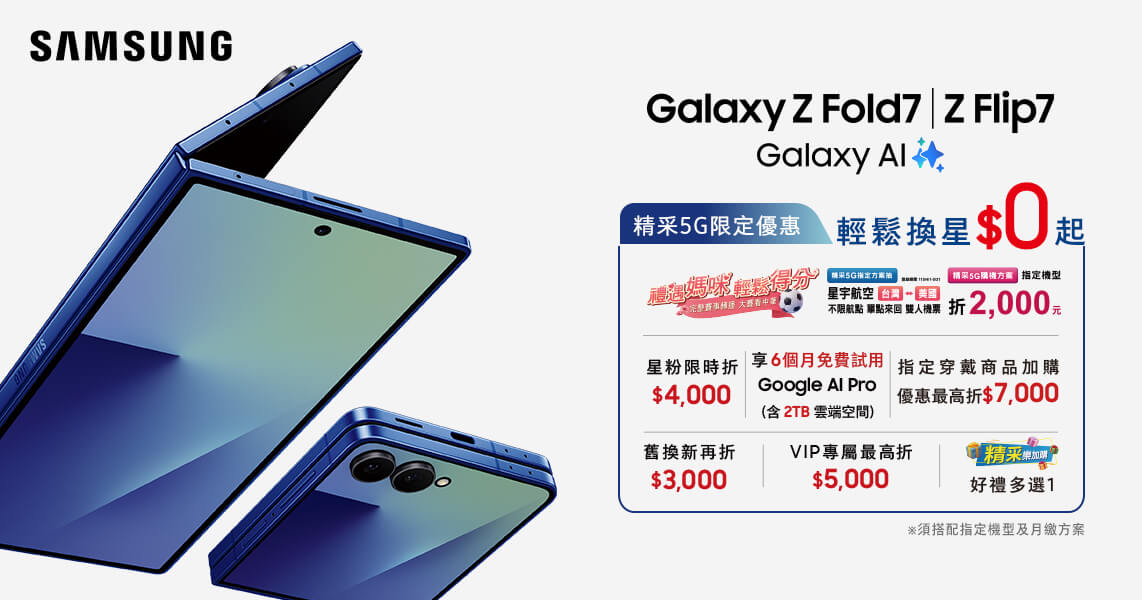 【Samsung Galaxy Z Fold7 | Z Flip7 搭配 精采5G 優惠價】