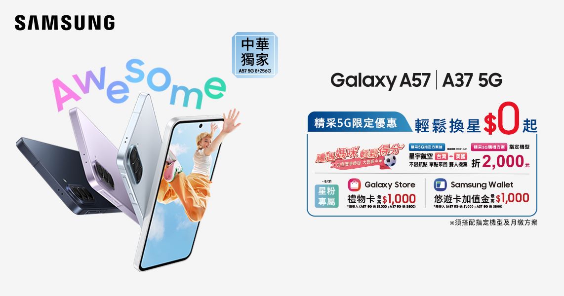 【 Samsung Galaxy A57 | A37 搭配 精采5G 優惠價】