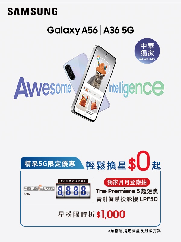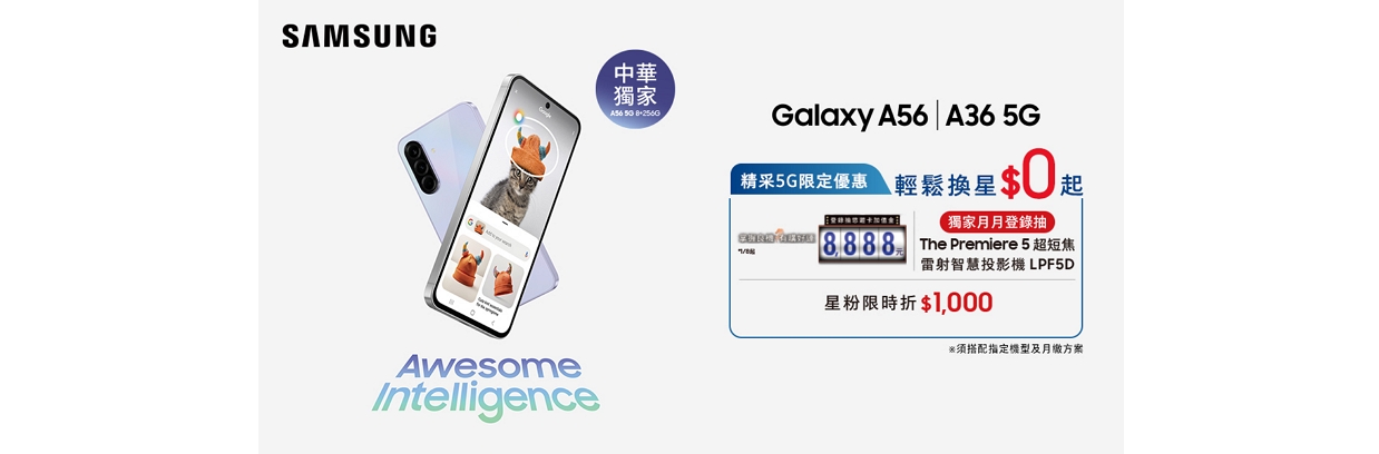 【 Samsung Galaxy A56 | A36 搭配 精采5G 優惠價】