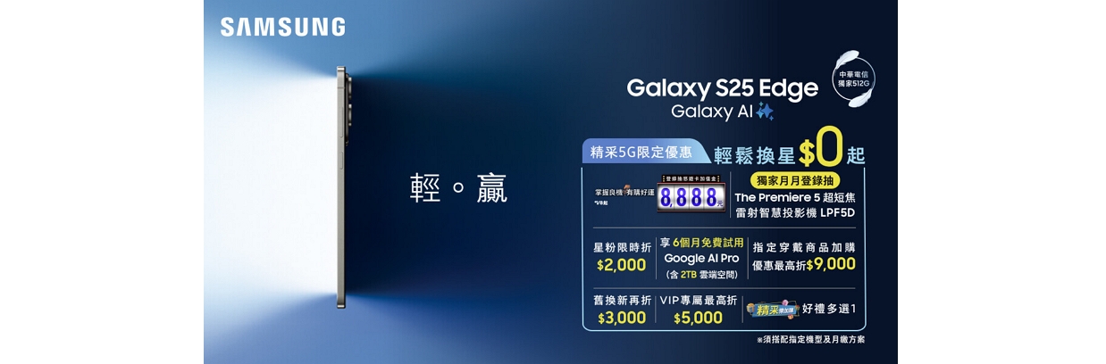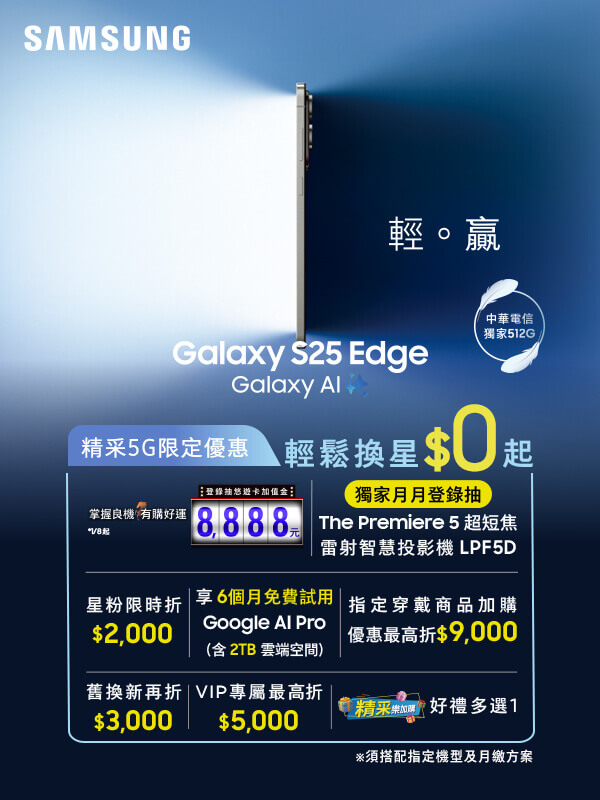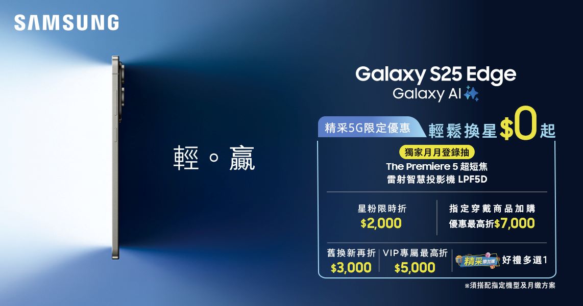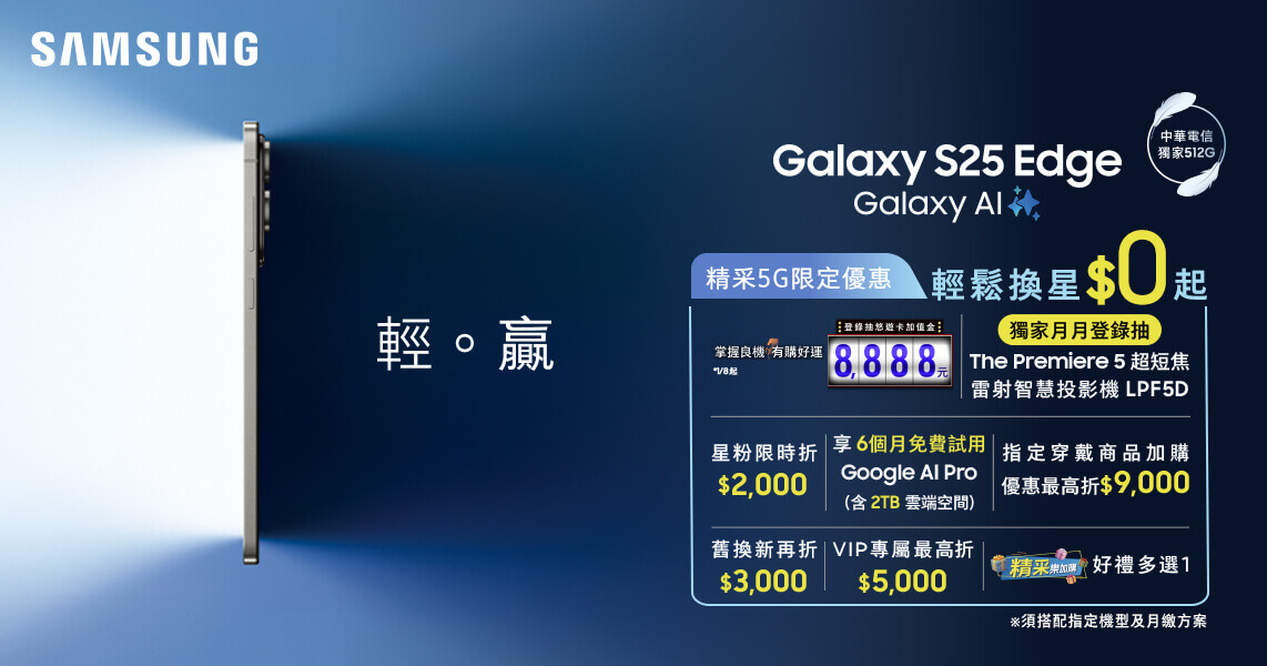 【SAMSUNG Galaxy S25 Edge 搭配精采5G優惠價】
