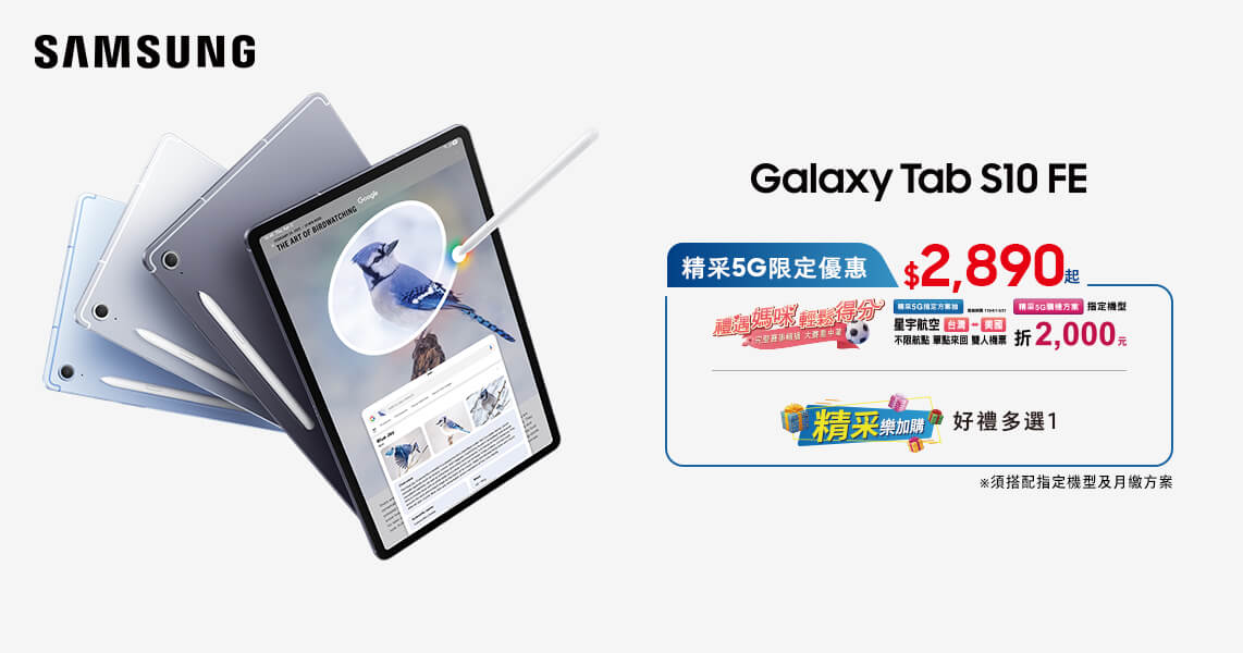 【 Samsung Galaxy Tab S10 FE 系列搭配 精采5G 優惠價】