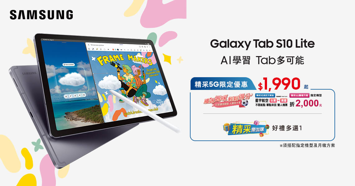 【 Samsung Galaxy Tab S10 Lite 系列搭配 精采5G 優惠價】
