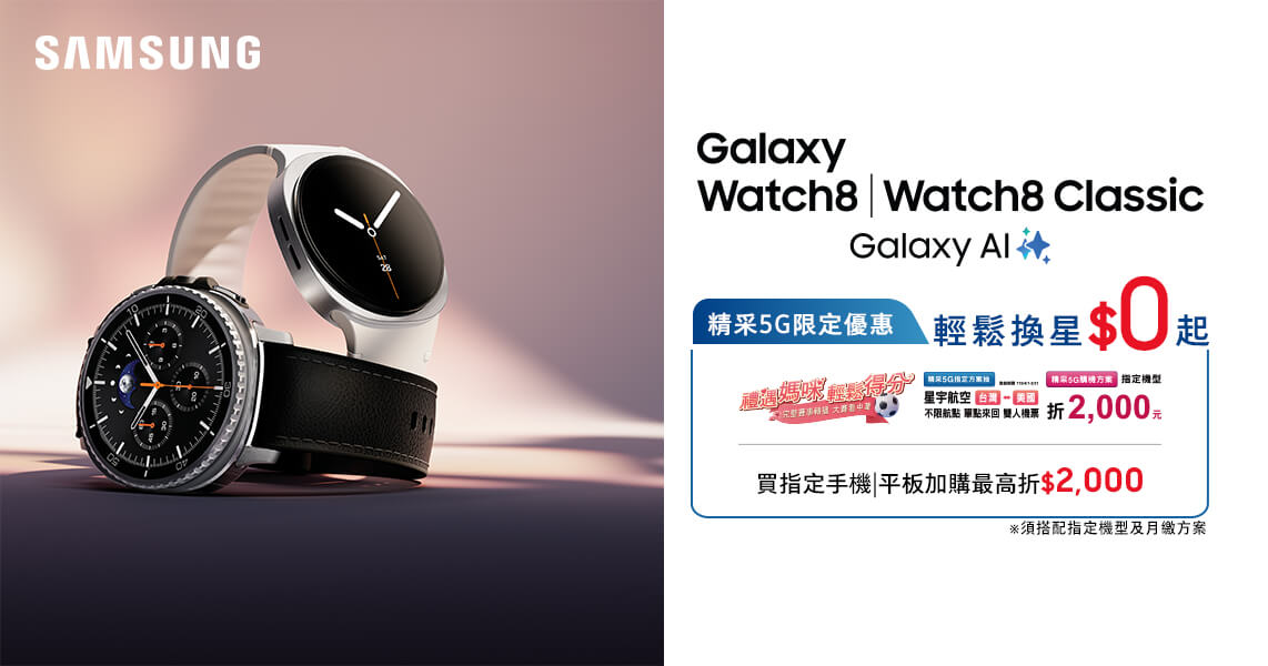 【 Samsung Galaxy Watch8系列 搭配 精采5G 優惠價】