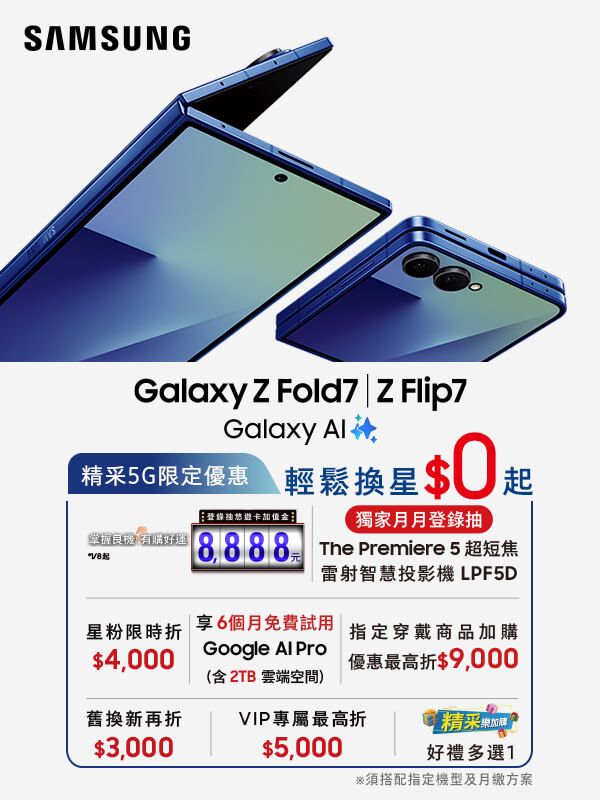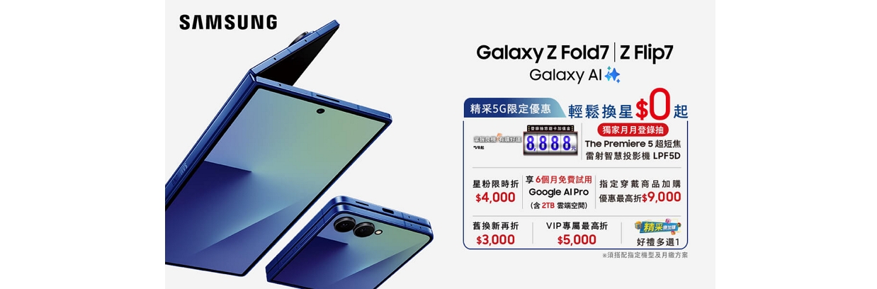 【Samsung Galaxy Z Fold7 | Z Flip7 搭配 精采5G 優惠價】