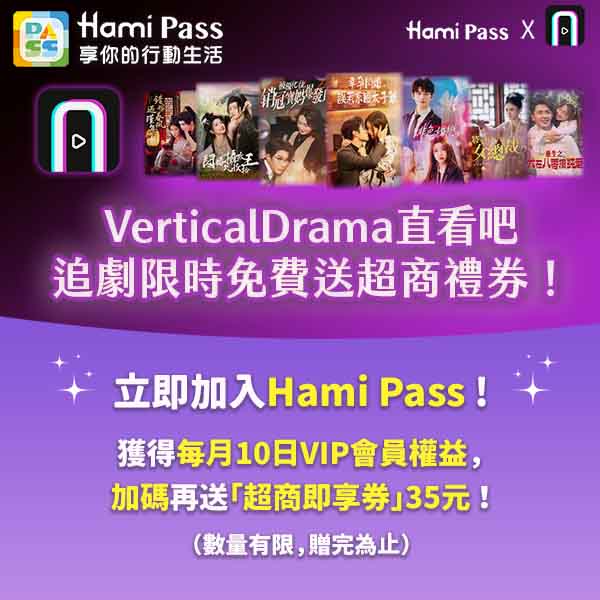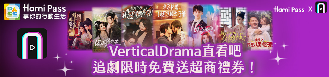 5. Hami Pass享行動上網量1GB/59元優惠限4G客戶申請。