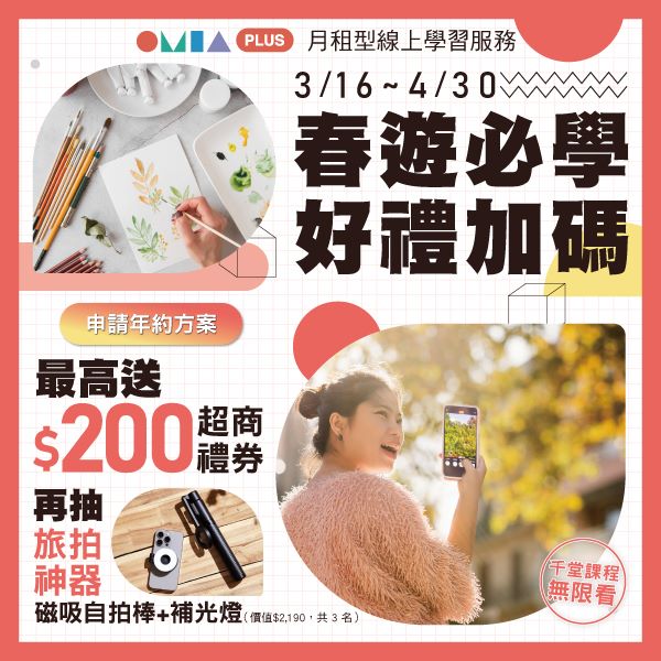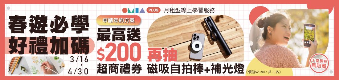 29. OMIA PLUS以串流方式提供影片內容,付費期間您需登入至指定服務網站,在網路連線的環境下觀看影音內容,但無法下載學習影片,一但付費終止,則無法再觀看線上課程。OMIA PLUS內的課程學習單元週週更新,以實際品項為主。部分課程視授權因素可能會不定期下架,詳細資訊請詳閱OMIA PLUS官網:https://www.omia.com.tw/plus