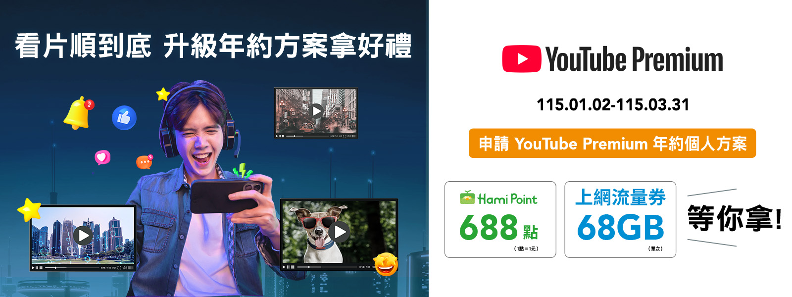 申請完成當下合約即生效計費,為保障您的權益,建議您在完成申請YouTube Premium後立即開通啟用服務。
