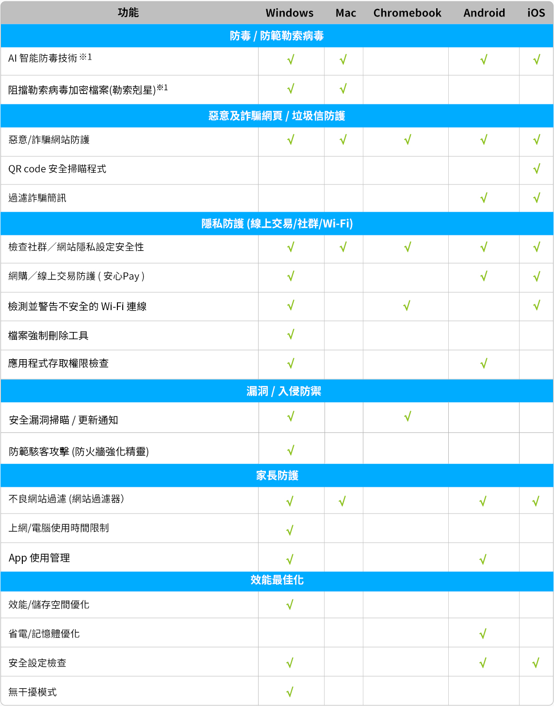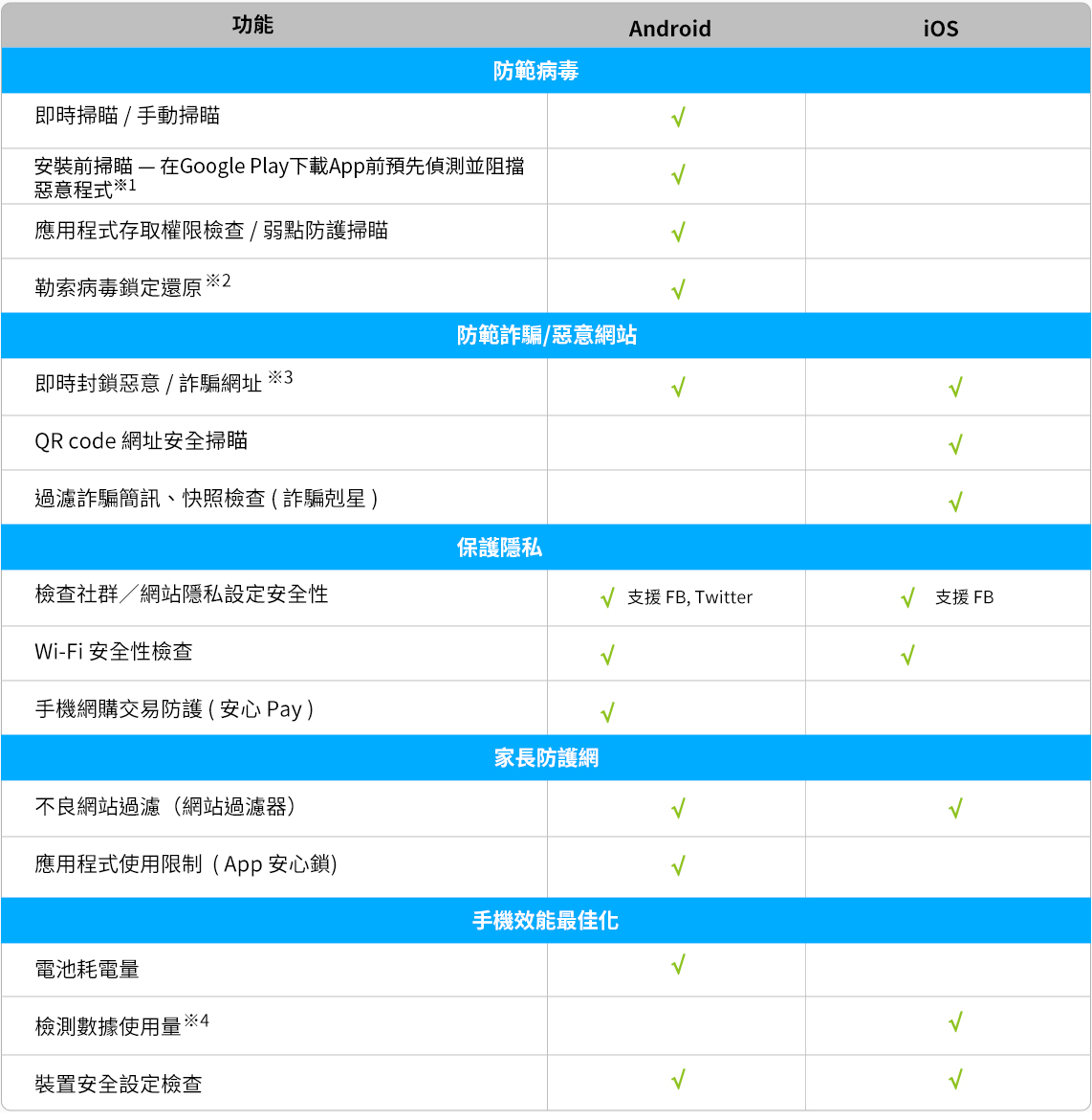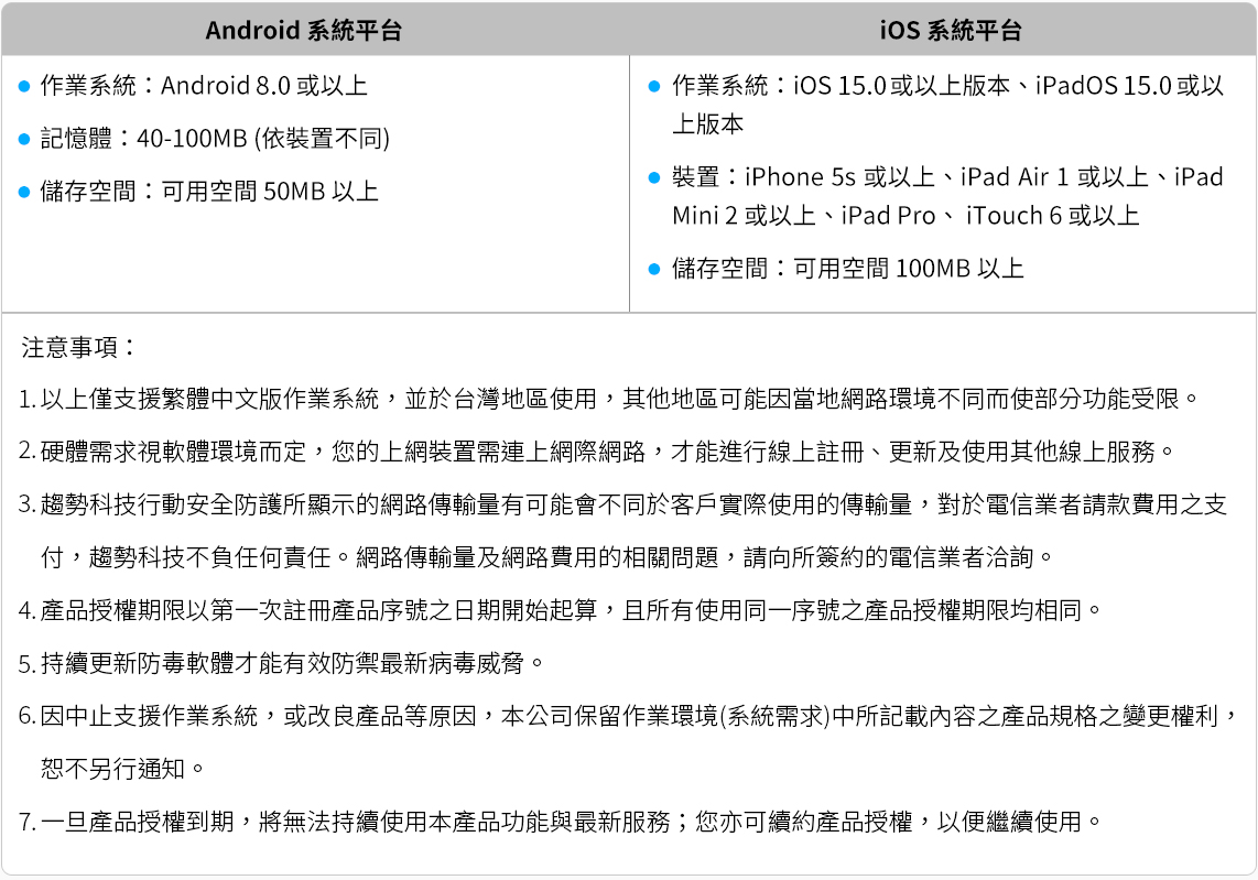 ※ 行動安全防護產品功能會依照作業系統或版本更新隨時異動,恕不主動通知。