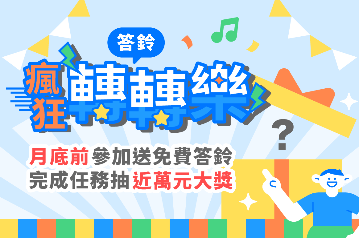 來電答鈴,挑戰最高CP值 每月只要 30 元,換取近萬元大獎抽獎機會 全館萬首歌曲任你選 中華電信網路限定活動 參加就送免費答鈴! 每月再抽近萬元豪禮 前往參加試手氣 功能亮點 用喜歡的歌曲代替單調嘟嘟聲 還有其他 AI 功能等你試用! AI 長輩圖 日常問候到節日祝福 AI 輕鬆產出最特別長輩圖 定期更新節日限定主題 AI協助產出祝福語 完成後一鍵分享給好友 前往試用 來電答鈴 用來電答鈴打造個人風格 新會員首次下載答鈴免費 申辦即享兩首基本答鈴 每月更新會員抽獎活動 每年會員生日禮 前往挑歌 AI 自錄鈴 串接AI產出文案+語音 製作專屬來電答鈴 商務、休假、搞怪、告白,多樣應用情境實用度 UP UP 自選人聲 AI 文字轉語音 前往試用 優惠方案 加值年約優惠方案 租期 12 個月 | 每月$64 來電答鈴超值包綁約12個月 更多租期選擇 開始申請 Hami好康三部曲優惠方案 租期 12 個月 | 每月$100 贈行動上網量 2GB/月 色情守門員行動版綁約12個月 來電答鈴超值包綁約12個月 行動資安樂遊包綁約12個月 更多租期選擇 開始申請 Hami好康三部曲優惠方案 租期 12 個月 | 每月$100 贈行動上網量 2GB/月 防駭守門員行動版綁約12個月 來電答鈴超值包綁約12個月 行動資安樂遊包綁約12個月 更多租期選擇 開始申請