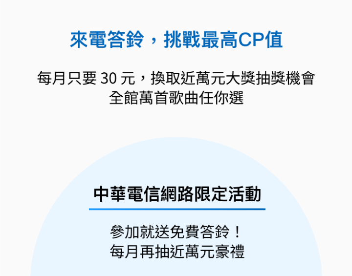 月租型用戶 預付型用戶(如意卡) 設定費 免收 30元 / 次,每次使用期限30天 月租費 30元 免收 下載鈴聲 10 或 15元 / 次 20 或 30元 / 次 * 自我錄製費用 15元 / 次,30秒 30元 / 次,30秒 音樂盒月租費 30元 / 50元 / 70元/100元 暫不開放 IVR(撥700) 依一般行動電話網內計費,不列入各優惠方案贈送之通信分鐘數扣抵範圍;深夜時段比照減價時段計費