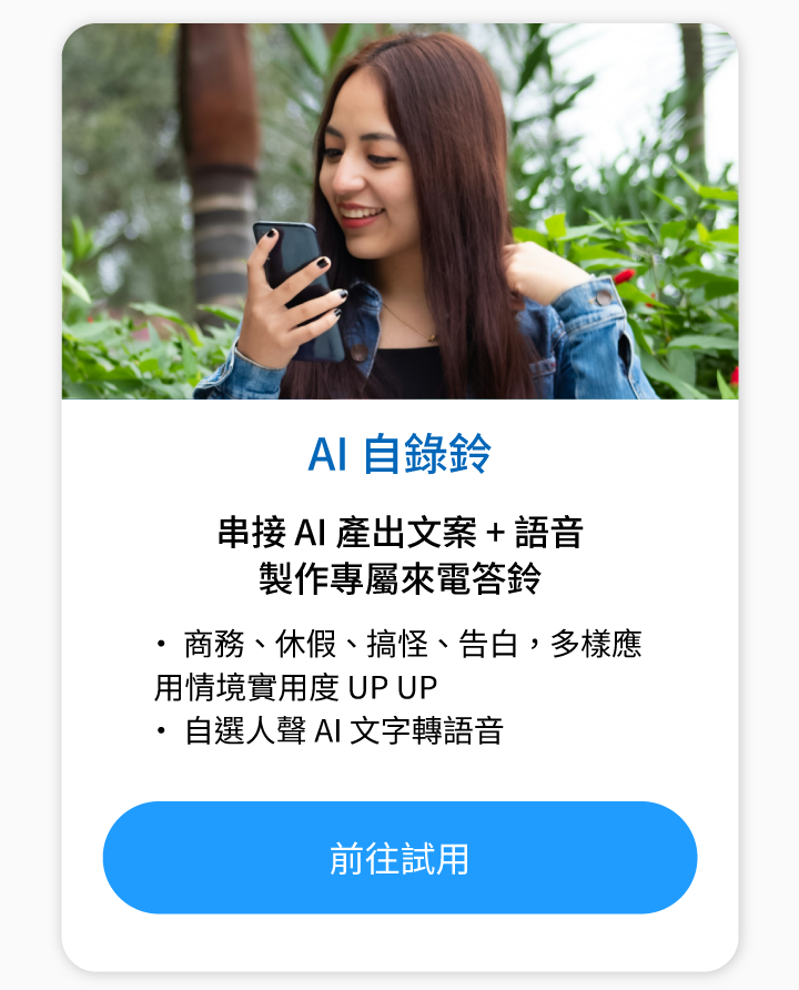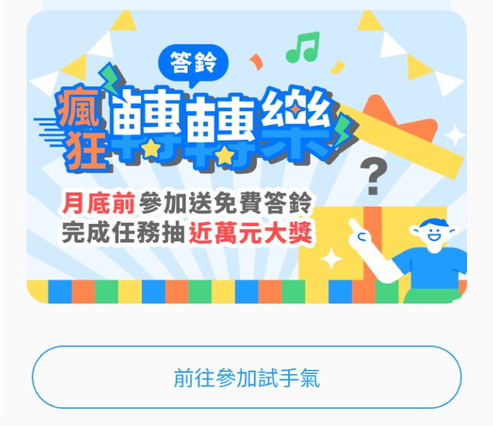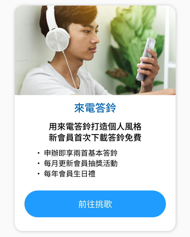 Q 如何使用「來電答鈴」服務? A 完成基本型月租申裝後,不需設定即享有每月2首系統自訂基本答鈴輪流撥放。 Q 如何下載自己想要的來電答鈴? A 完成申裝後,透過以下路徑即可試聽並下載自己想要的答鈴 1.手機直撥700 2.網站 Q 如何設定自己已下載的來電答鈴? A 完成申裝及下載後,透過以下路徑即可設定自己想要的答鈴 1.手機直撥700 2.網站 =>會員專區=>答鈴設定