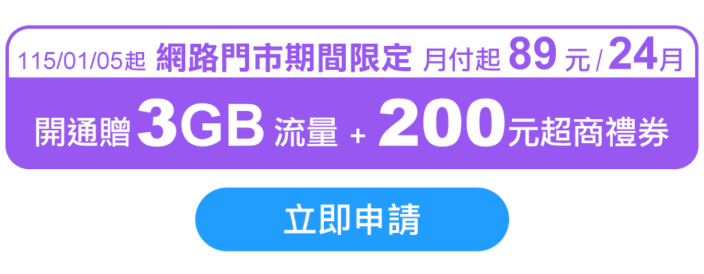 - 115/01/01 -115/02/28止,網路門市申請Hami書城月讀包任一付費年約方案,加碼贈150元超商現金抵用券。