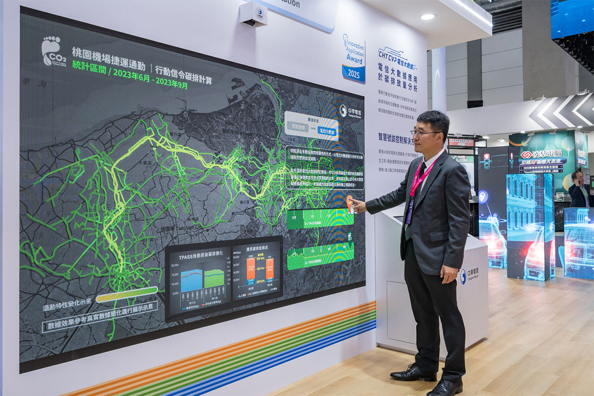 張本元接著指出,交通是城市運輸動脈,涉及的人、車、路層面極廣,中華電信利用長期累積的電信大數據,建立起行動信令交通大數據平台,打造各種智慧化應用。「這個平台不僅能提供全台主要道路的即時路況,還能以AI技術進行短期交通預測,並透過行動信令技術推斷交通工具種類、計算旅行距離,估算城市的交通碳排放量。」