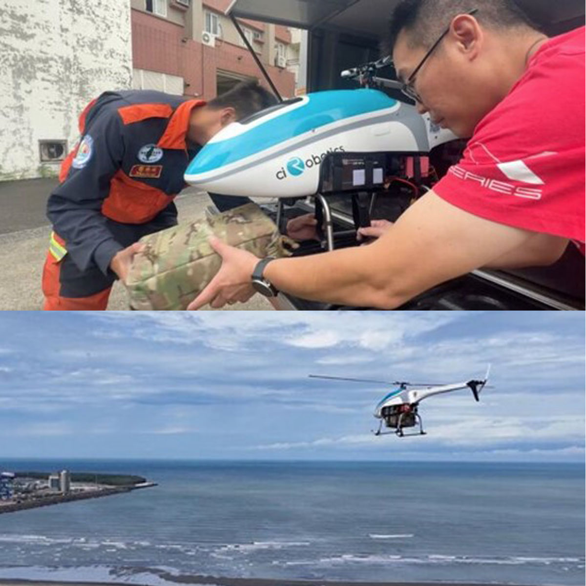 ▲血品裝入無人機後,能在極短時間內飛抵災區,迅速送達前線。