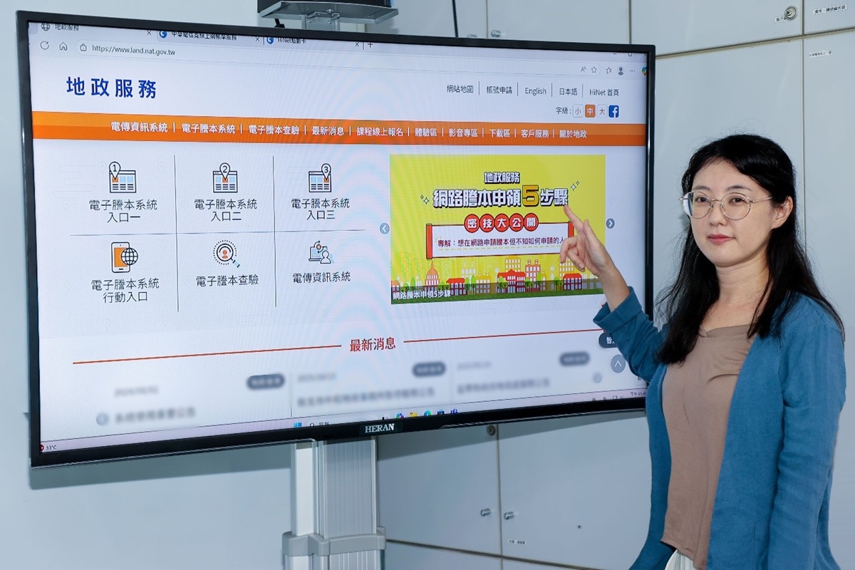 ▲民眾可透過教學課程一步步學會申請電子謄本,輕鬆完成地政查詢。