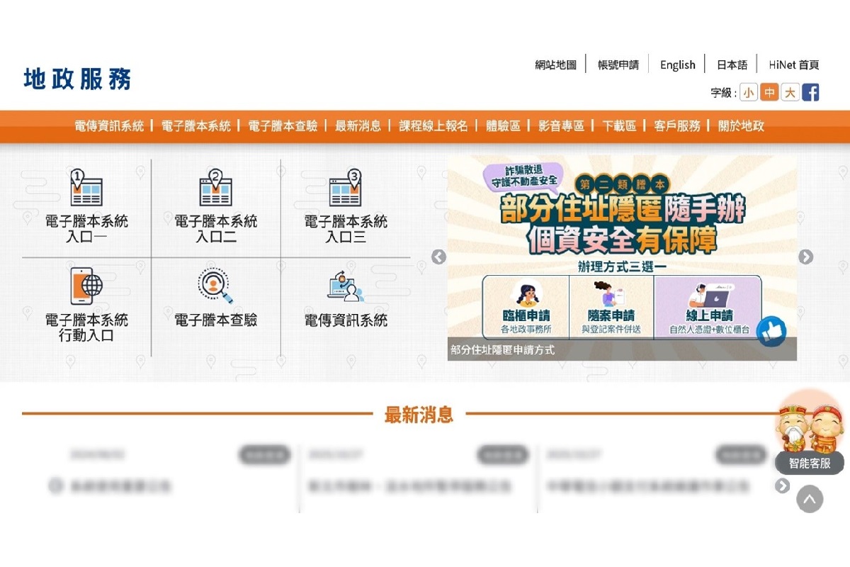 近年政府為保障謄本資料並兼顧不動產交易安全,謄本實施分級制共有三類謄本的申請對象與顯示內容會有差異,其中第一類謄本僅限屋主或委託代理人申辦;第二類謄本所有人都可以申請調閱,但所有權人資料顯示會以部分隱匿方式以保障個人資料安全;而第三類謄本則提供利害關係人申請。網路申請地政電子謄本費用比照地政事務所收費,謄本每張20元、建物門牌查詢每筆10元、人工登記簿謄本每張10元,民眾可用中華電信HiNet帳號登入系統,先使用再於次月電信帳單收費;沒有中華電信帳號的民眾則可持自然人憑證完成身分驗證後,透過WebATM進行付款,翻轉過往「紙本跑流程」的作業模式。