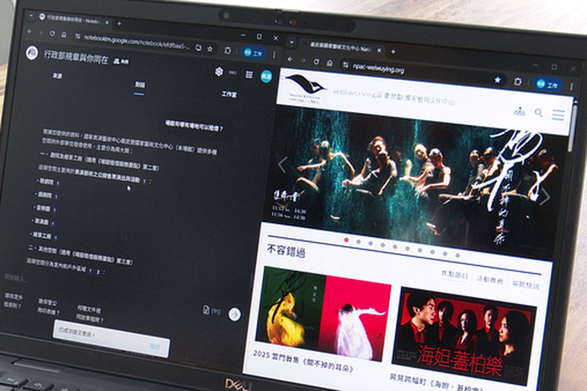 簡總監形容這是一套「雙引擎策略」:Google Workspace(GWS)作為專業數位後台,確保行政流程順暢,透過 Google 日曆管理劇場檔期與排練室預借,實現設備、人員、場地的「零衝突」調度;NotebookLM 則化身 AI 策劃助理,快速整合場館管理規章、策展資料及教育推廣素材,將龐大資訊轉化為可用知識。