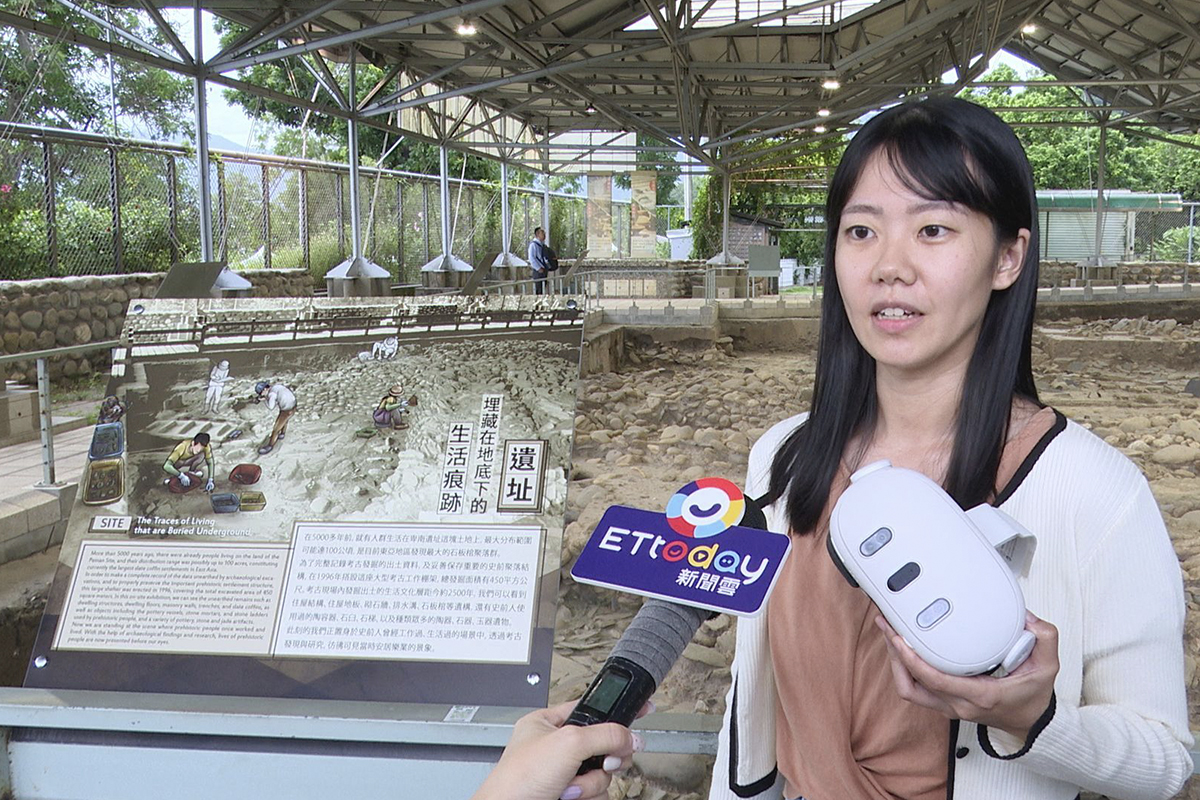 在公園的另一處考古現場,也導入了中華電信「我們生活在遺址上」XR體驗導覽,民眾只要戴上XR頭盔,眼前立刻展開一場「古今交錯」的沉浸體驗,透過虛實整合的技術,不僅能重現史前人生活的場景,土地上的神話故事,還能身歷其境感受當時戰火下個搶救考古與當代考古發掘工作,觀看沉浸式內容,形成「在遺址現場穿越時空三千年」的延展實境體驗,讓民眾直呼好好玩。