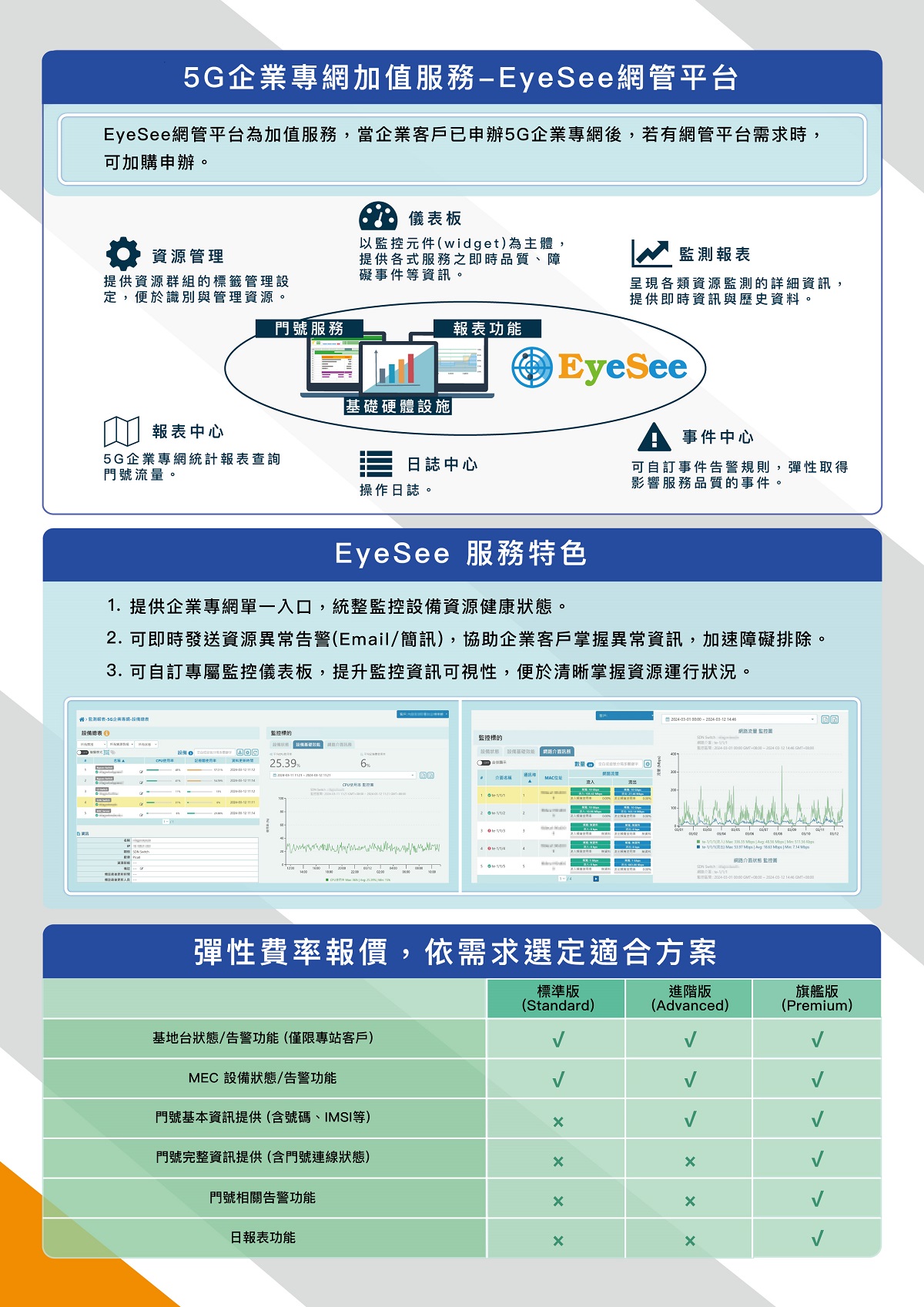 - 產品優勢:採獨立SIM卡、基地台及核網,安全性等級最高。