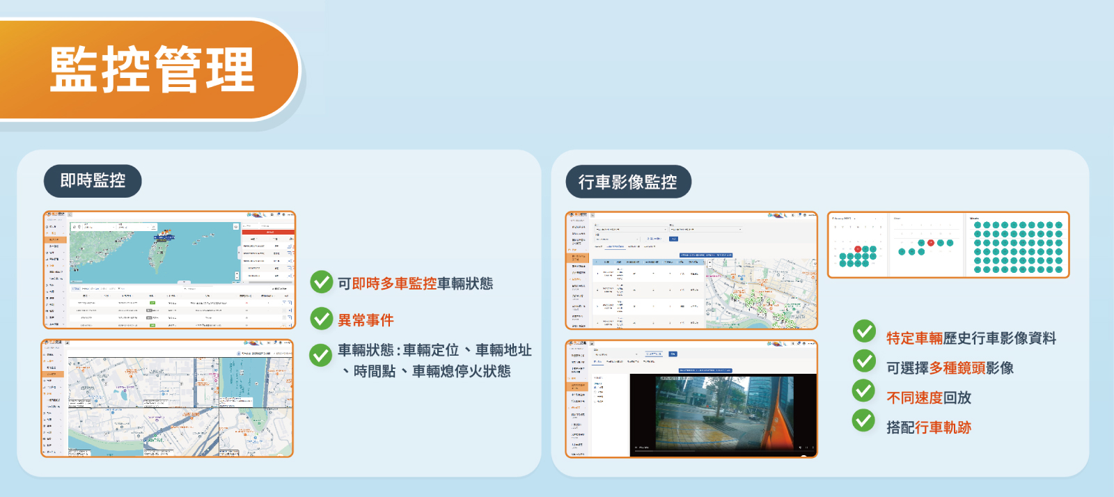 即時監控 : 車輛定位監控、偵測異常事件,以了解車輛狀態