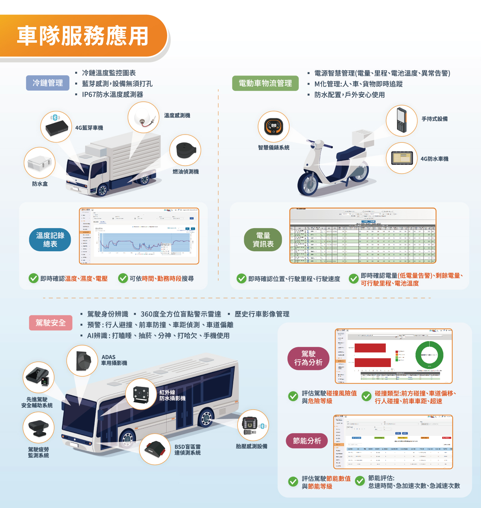 效益: 駕駛與乘客安全、車輛節能減碳、車隊即時控管