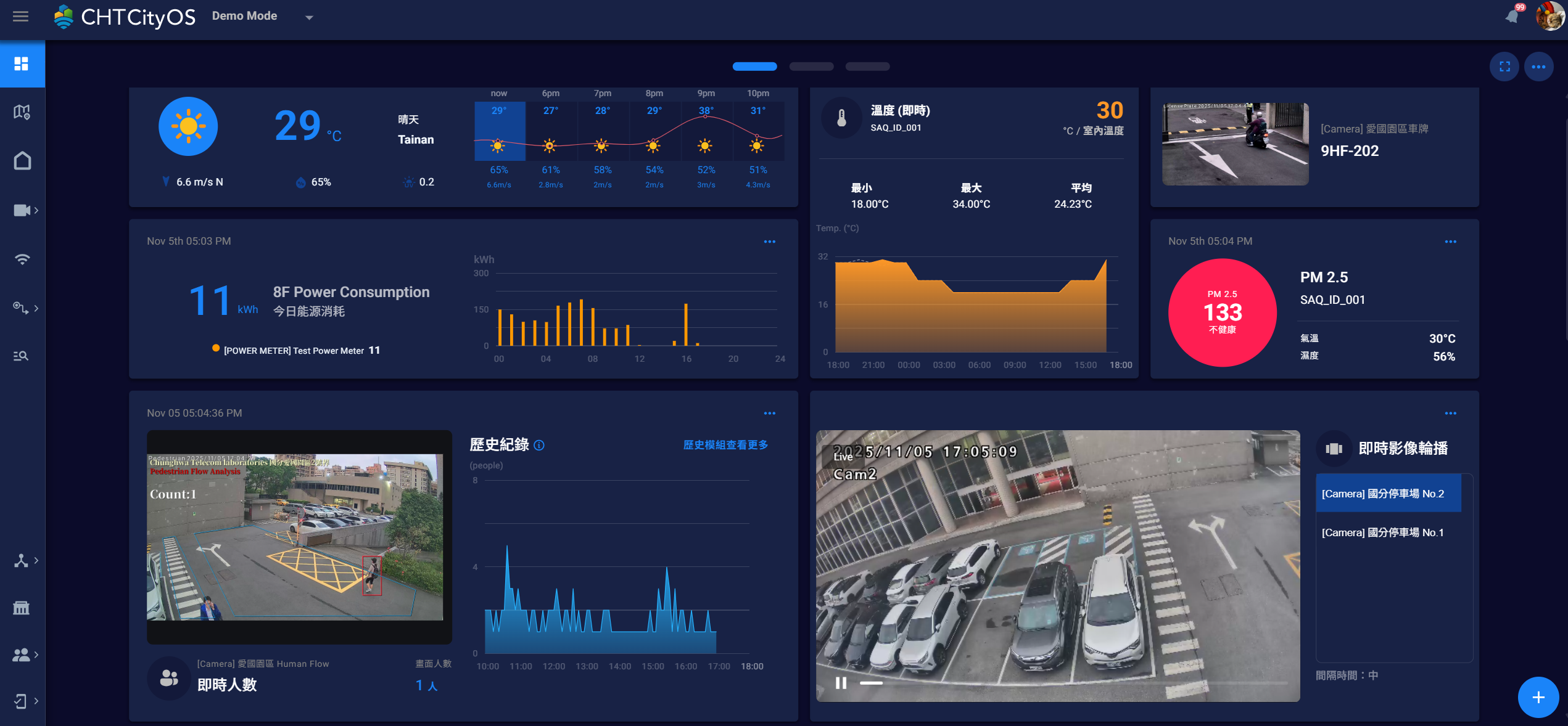 中華電信智慧城市解決方案,以自主研發的 CityOS平台為核心,協助政府與企業加速數位轉型, 推動城市與產業智慧升級。
