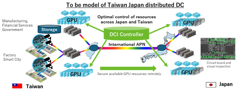 Through the use of these technologies, the four companies plan to collaborate on creating use cases for distributed DC. Specifically, to address Taiwan’s high demand for learning and inference along with challenges like Taiwan's data center and power shortages, they will utilize Japanese data centers via the international IOWN APN. This will enable resource control across multiple data centers, even if they belong to different countries or operators, using the DCI controller, aiming for the early societal implementation of distributed DCs that allow flexible management of data centers at an international level.